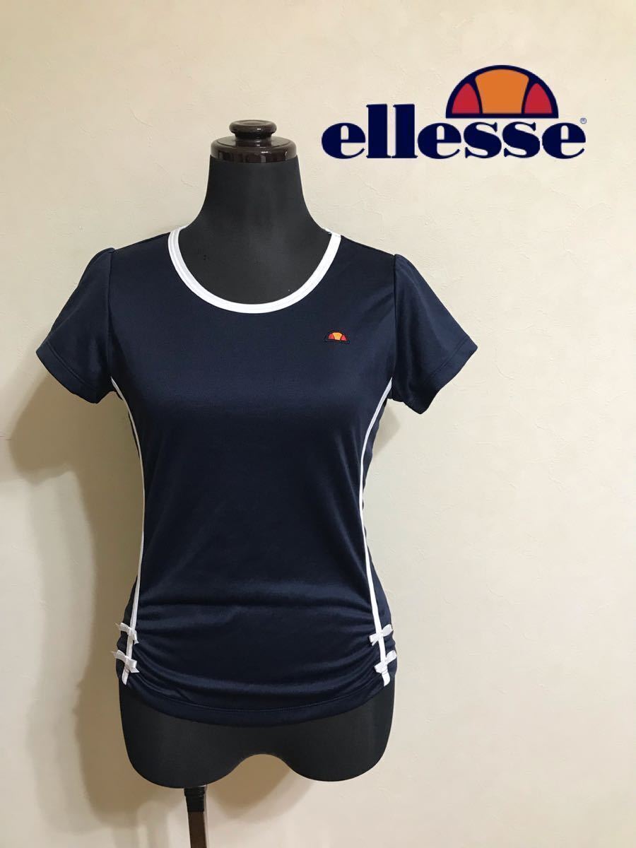- 【美品】 ellesse エレッセ レディース テニスウェア ドライ Tシャツ トレーニングウェア トップス サイズS 半袖 ネイビー ゴールドウィン