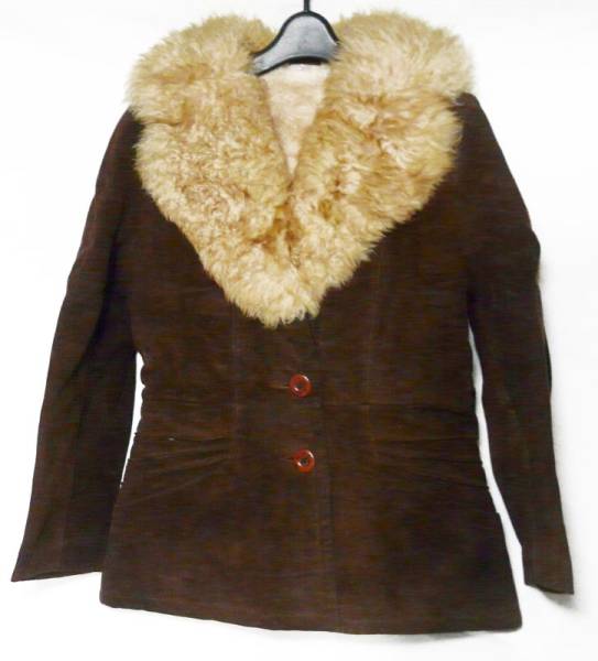 - USA70'sヴィンテージ /フェイクファー+本革スェード/コート茶