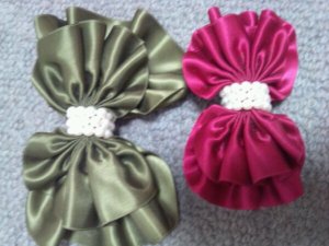 - カーキ&ピンクサテンリボンバレッタセンター真珠大小2点セット