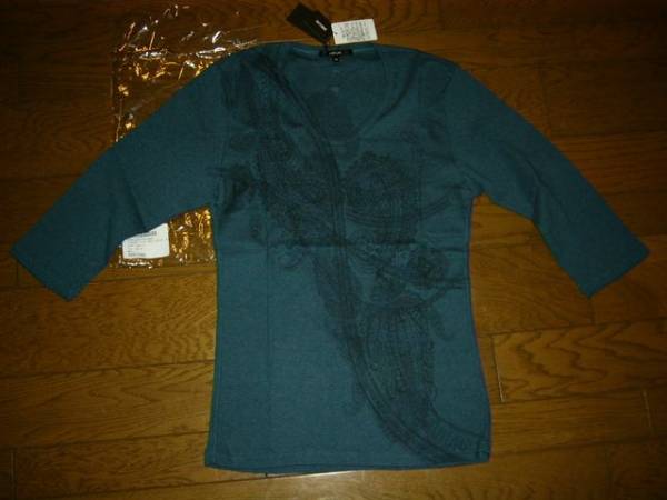 > 新品SHELLACシェラック カットソー 44 ペイズリー柄7分丈ロンTシャツ