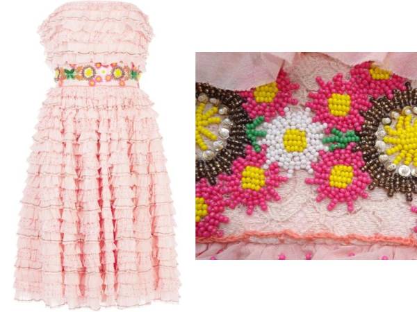 > MANOUSH マヌーシュ ベアトップドレス ワンピース シルク 38 SM ピンク ビーズ 新品 レース オーガンジー スパンコール 刺繍 花 12万円相当