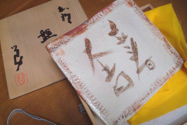 - 加藤留助作★志野焼★盤★陶板★立春大吉★箱入未使用♪