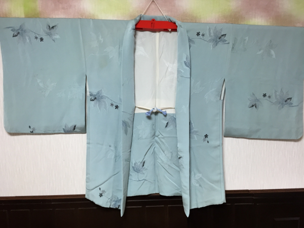 - 【羽織】正絹/袷/羽織丈72cm/白藍色/紐付き 073103