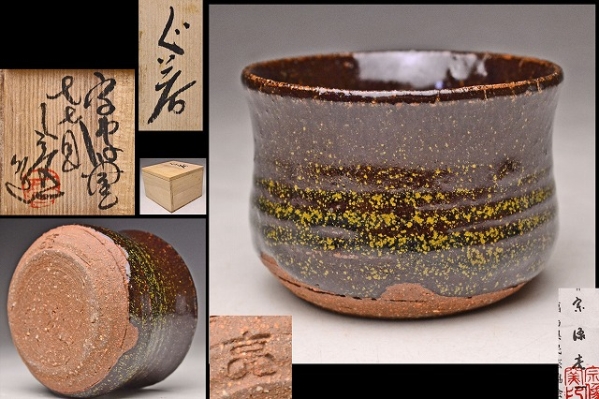- 宗像亮一 ★ 会津本郷鉄釉ぐい呑 ★ 共箱栞 ★ 検 浜田庄司 河井寛次郎 ★