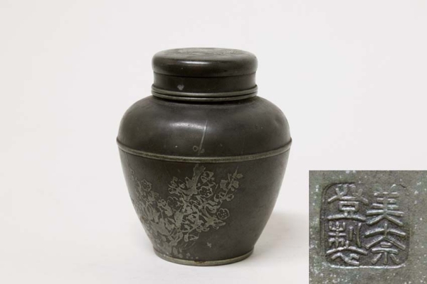 - harip 煎茶道具 茶入古錫製 「美奈登製」在銘 茶壷