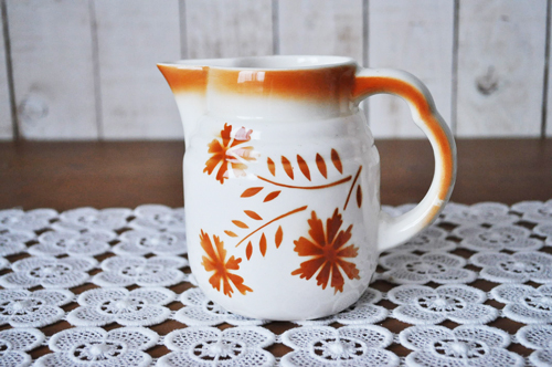 - ドイツ・アイボリー陶器のピッチャー/オレンジ花 [3692]