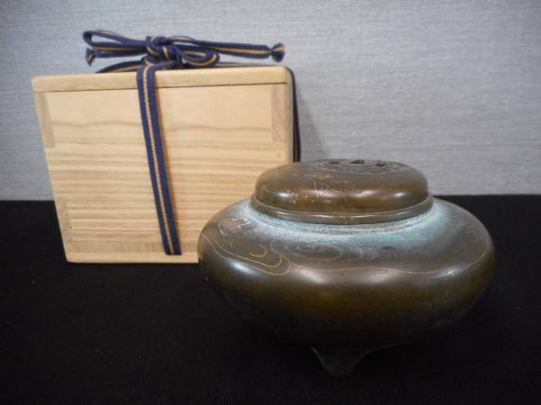(管Ⅰ7)旧家蔵出時代骨董 江戸中期 金銀象嵌 真鍮製香炉