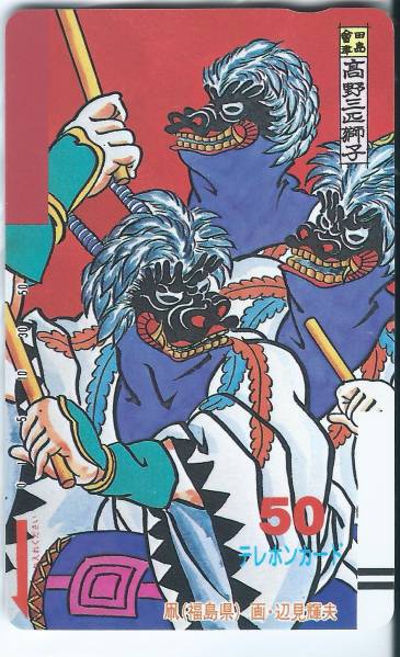 - 【テレカ】 辺見輝夫 会津田島 高野三匹獅子 凧(福島県)