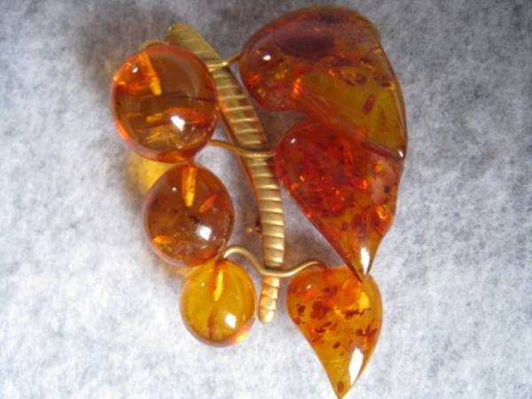 - [SAMU]豪華!!艶やかな天然琥珀 ゴールドブローチ★お買い得品!