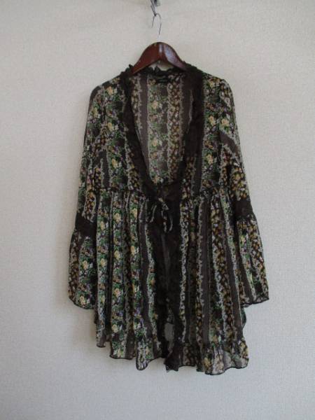 - Agrimony茶花柄シフォン前開きカーデ羽織(USED)21816)