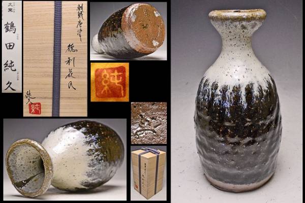 - 鶴田純久 ★ 朝鮮唐津徳利花入 ★ 共箱共布栞 ★ 茶道具 ★ 華道具 ★ 花器