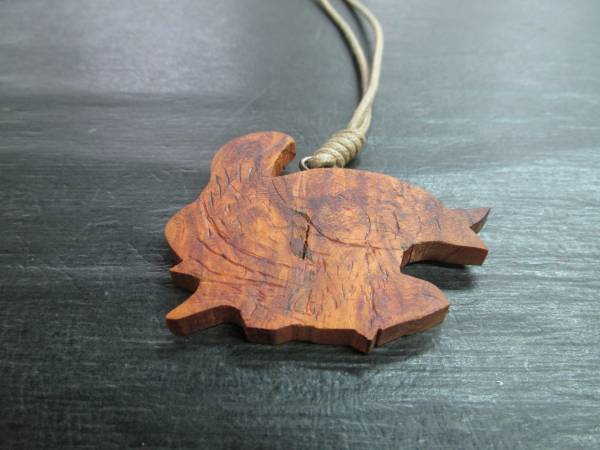 - 花梨瘤オイルフィニッシュ魚を捕らえた隼鳥獣戯画ペンダント