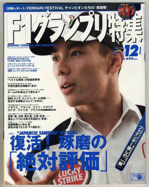 書名/記事: 03.12 F1グランプリ特集/佐藤琢磨の絶対評価、ブリヂストン栄光への218日、「煙草」と「F1」のビミョウな関係、佐藤琢磨vs本山哲2人の「F1適応力」、...