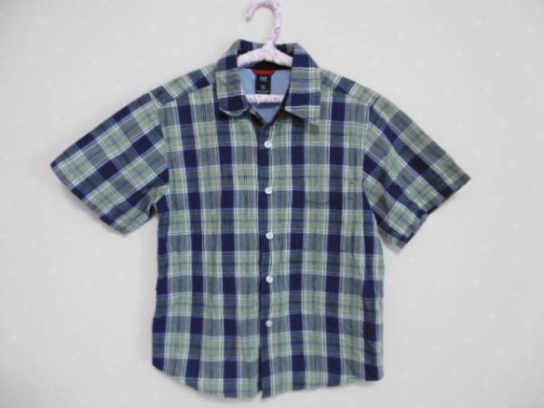 - ё Gap Kids ё チェック柄半袖シャツ ■M7-8■グリーン