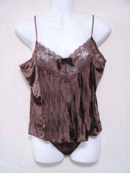 - ☆P92花柄レース♪キャミ/バスト90&ショ-ツL(ブラウン)☆