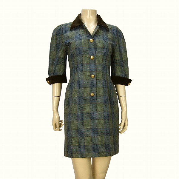 - A 美品★FOXEY BOUTIQUE フォクシーブティック★高貴チェック柄*光沢アンティーク調ボタン*綺麗な5分袖ワンピース*40/L*11号