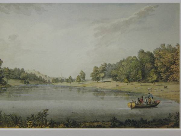 - サミュエル・ヒエロニムス・グリム、遠くにロートン=アン=モルトン教会の見えるロシュ・アビー湖で釣りをする人々、希少画集画、新品額付