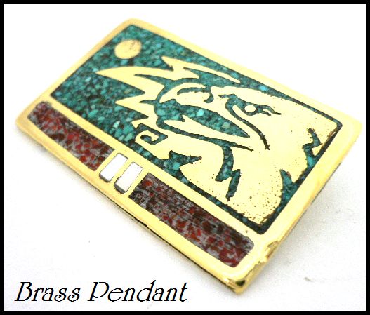 - 真鍮製Brass天然石ターコイズ インレイ イーグル プレート ブラス ペンダント