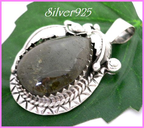 - シルバー925銀の天然石トルマリン ネイティブ リーフ ペンダント