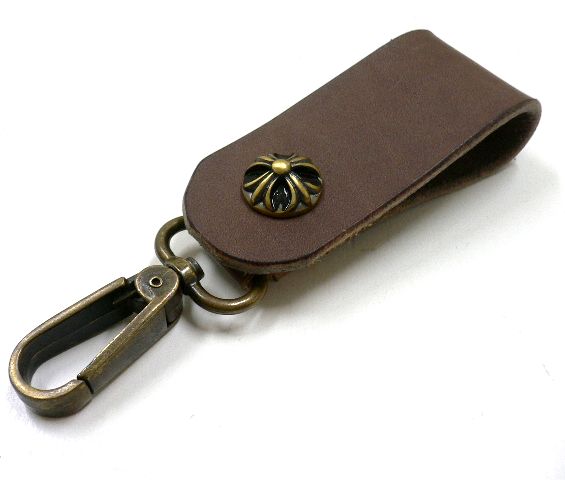 - 牛革ベルトループ キーホルダー こげ茶/クロスコンチョ付