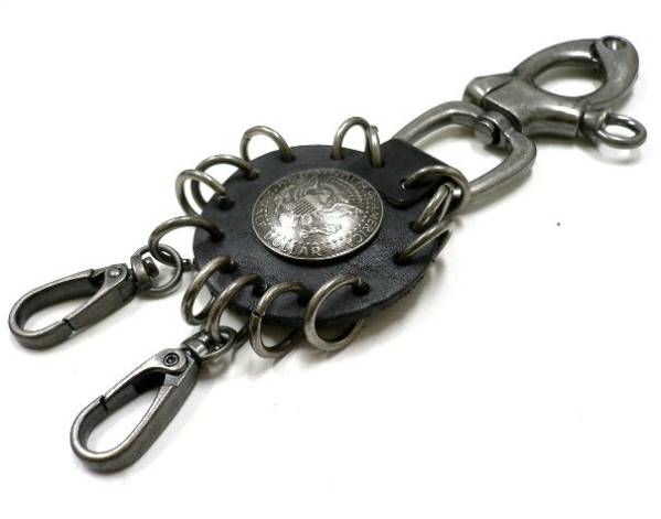 - 牛革コインエンブレム 2連 レザー キーホルダー黒 BIGフックtype/革製品ALL20%OFF