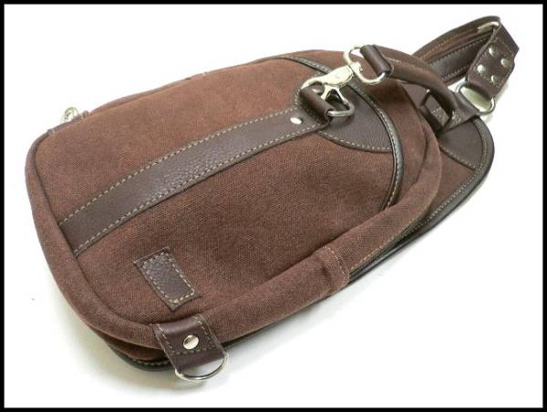- 牛革使い帆布 斜めがけショルダー ボディバッグ茶/革製品ALL20%OFF