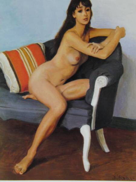 - 梶 進 「カウチソファ」、限定画集より、藤島 武二、新品額装付