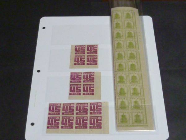 > №24 日本 切手 1946-48年 普通 2次新昭和 45銭 田型、8枚ブロック・1円20銭 20枚ブロック 未使用 NH