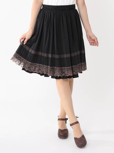> 276◇ウエストビジュープリーツスカート 黒 ブラック axes femme アクシーズ ファム TS281X21 プリーツ ビジュー
