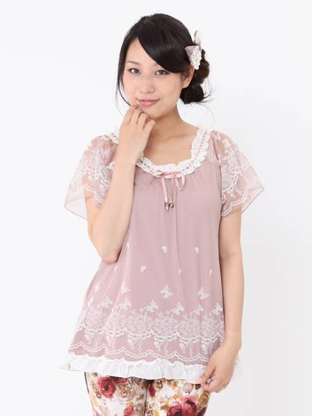 > 322◇刺繍風プリントPO 淡ピンク axes femme アクシーズ ファム PS25X141 半袖 プルオーバー