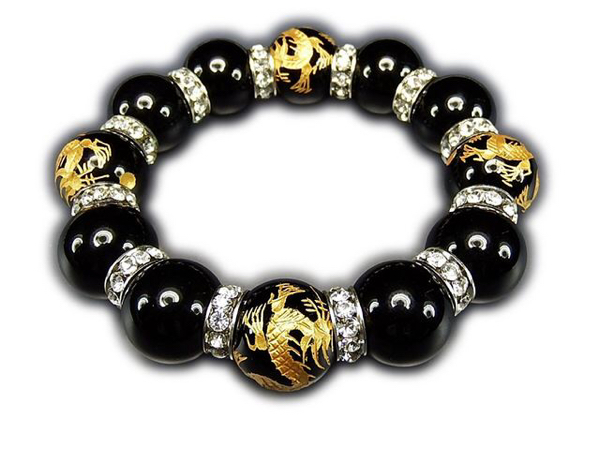 - 天然石超太18ミリオニキス皇帝龍手彫り金箔高級ロンデル数珠2石街