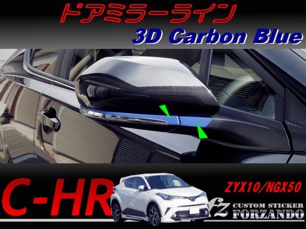 > C-HR CHR ドアミラーライン 3Dカーボン調 ブルー 車種別カット済みステッカー専門店 fz ZYX10 NGX50