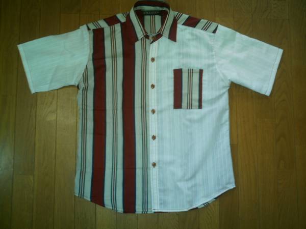 - ☆手作り☆ 和風ハーフ縦縞半袖シャツ エンジ XL 新品 送無料あり