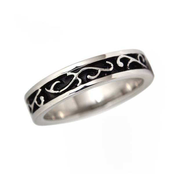 > ★人気★変色無★手入れ不要★肌に優しい★金属アレルギー&温泉&海水浴OK★ステンレスリング★シルバー×ブラックツートンコンビアラベスク