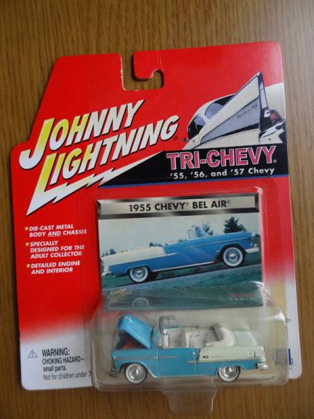 - [ミニカー] JOHNNY LIGHTNING トライシェビー 1955 シェビー・ベルエア (青/白) [1:64]