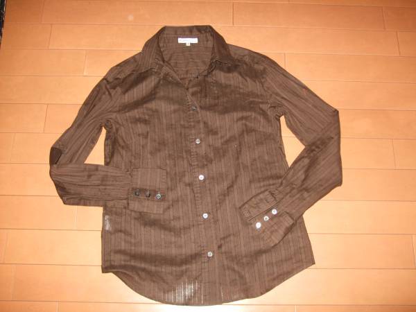 - 良品★マイケルコース 透かしストライプシャツ★サイズ4 ダークブラウン
