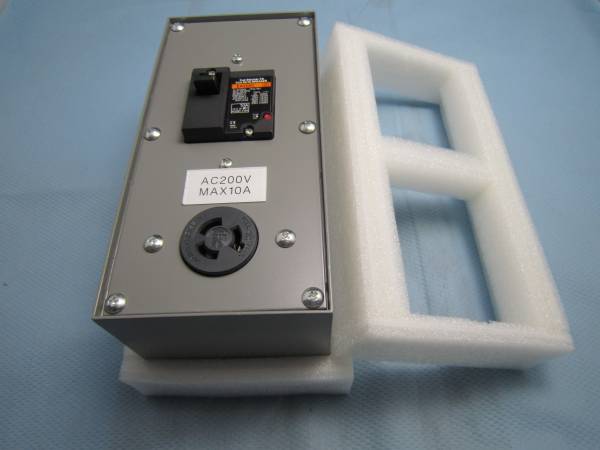 > 電源ボックス(鉄) AC200V MAX10A 外寸(横10cm 縦9cm奥行21cm)「 埋込コンセント15A250V 3120」 「オートブレーカーEA32AC10A」