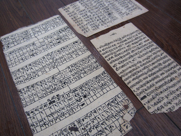 - インド ヒンドゥーの古い経文 5 断片 3葉 サンスクリット アンティーク