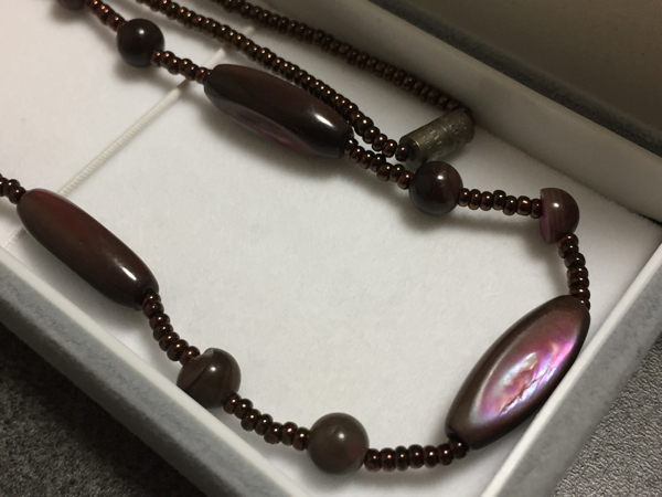 - シェル ビーズ パープルカラー ロングデザインネックレス