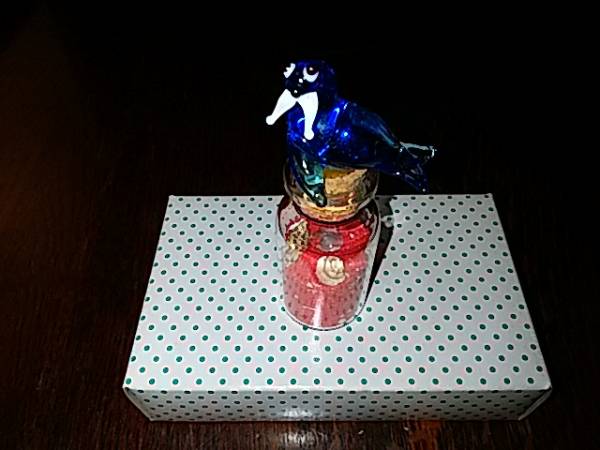 - ★老舗工房手作り1点物★ガラス細工 星の砂、貝入りボトル/アザラシ