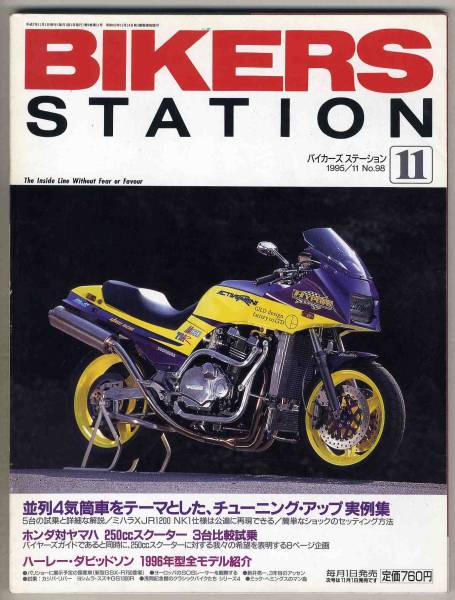 書名/記事: 95.11 バイカーズステーション/並列4気筒車チューニングアップ実例集、ホンダ対ヤマハ250ccスクーター比較試乗 - フリーウェイ,フュージョン,マジェスティ、ハーレーダビッドソン1996年型全モデル紹介、パリショー出展車速報、ケンツVRXトラッカーエディション、ガジバ・リバー、1980年型ヨシムラ・スズキGS1000R、浅間記念館のクラシックバイクたち、、…