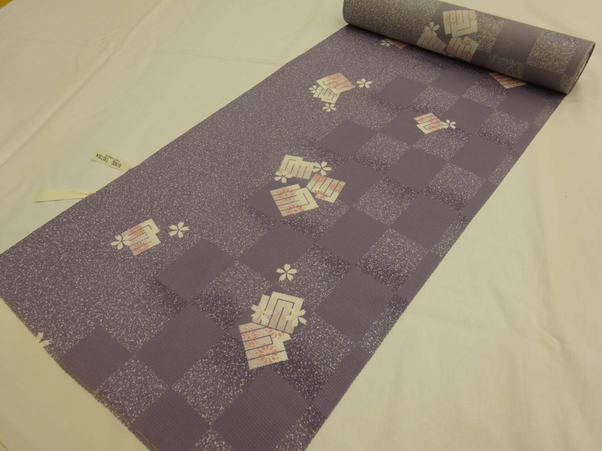 - 夏物★新品・正絹・反物★福井県・春江縮緬・絽小紋着尺★市松に源氏香桜柄