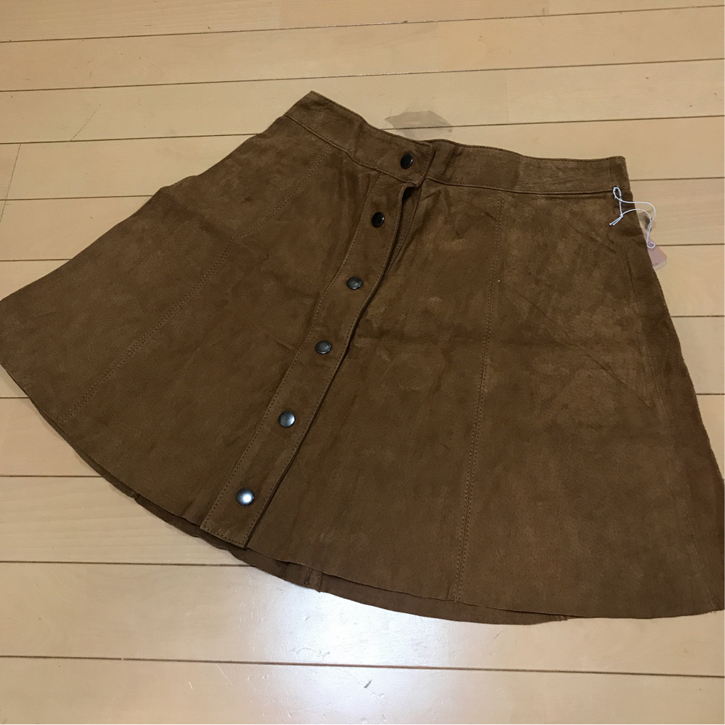 - 新品◆フォーエバー21 ◆ 本革 レザーミニスカート ◆Lキャメル◆前ボタン台形スカート ◆ 豚革