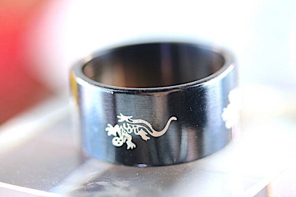 > 【送料無料】サイズ 16号 蜥蜴刻印 ステンレス ブラック リング ノーブランド 指輪 アクセサリー 《現物出品》 #154