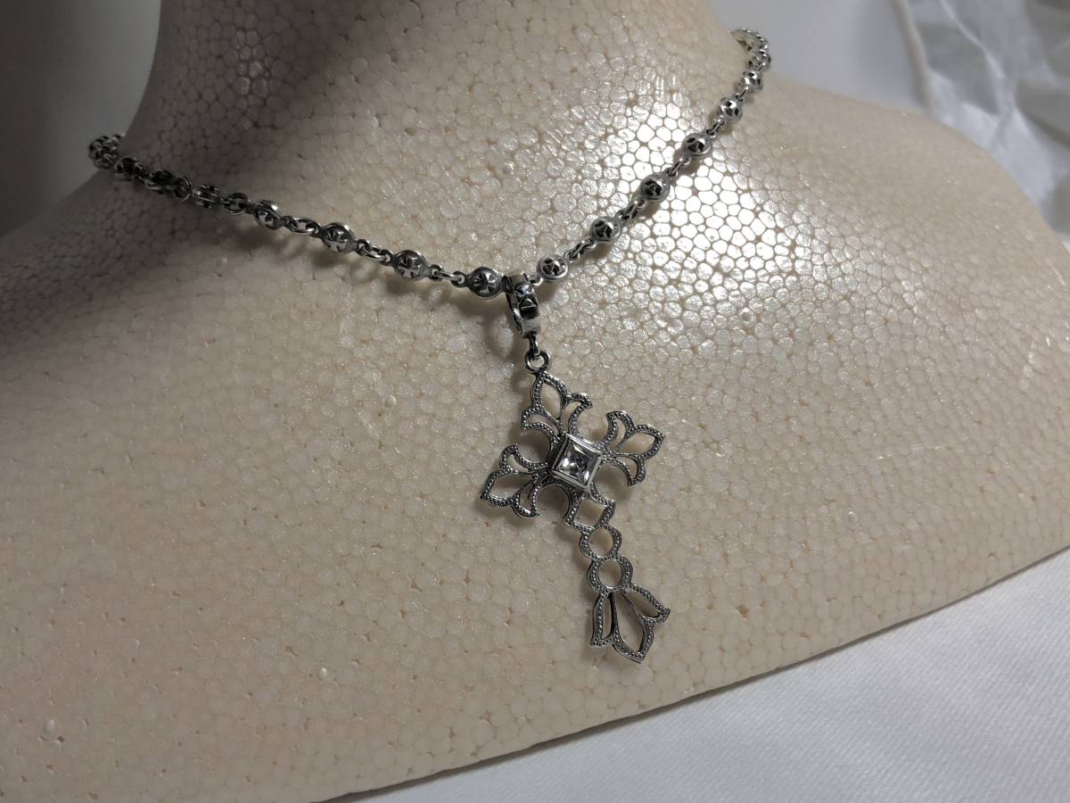 - 正規美 Loree Rodkinローリーロドキン ミルグレイ オープンLサイズクロス×純正ゴシックオーバルクロスチェーンネックレス SET シルバー925