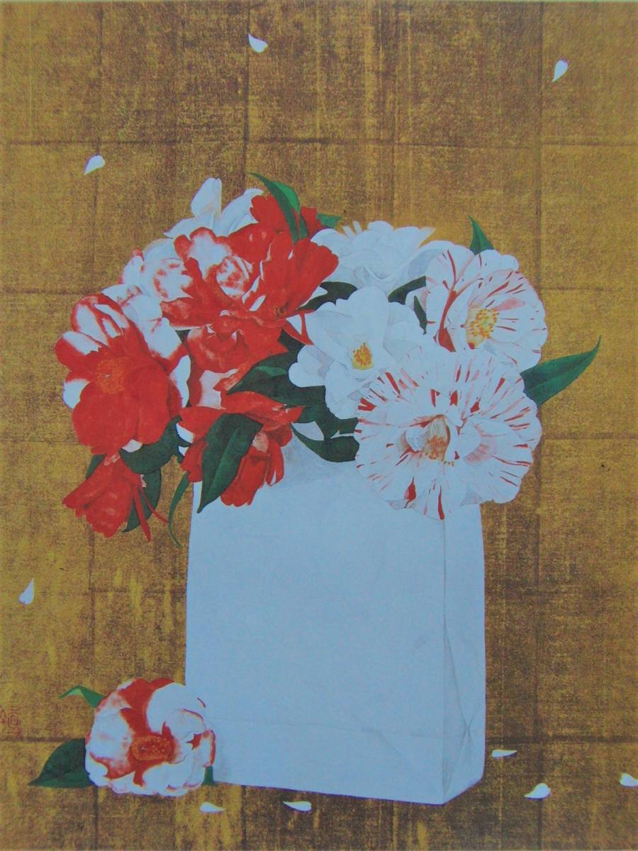 - 青山亘幹、【椿花】、希少画集・画版画、高級新品額・額装付、状態美麗、日本画家、送料込み