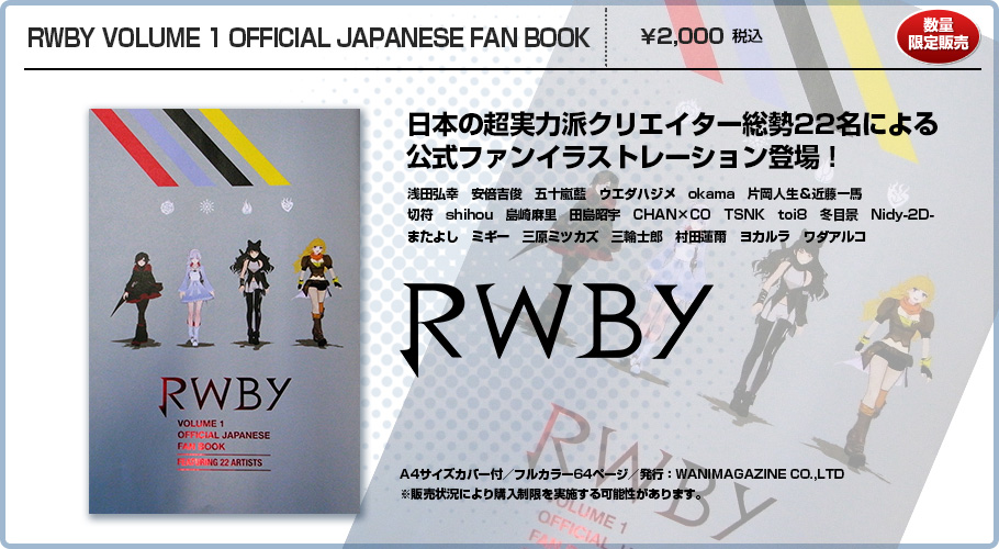 > C87 RWBY VOLUME 1 OFFICIAL JAPANESE FAN BOOK ルビー Rooster Teeth 浅田弘幸 切符 toi8 okama またよし 三輪士郎 村田蓮爾 ワダアルコ