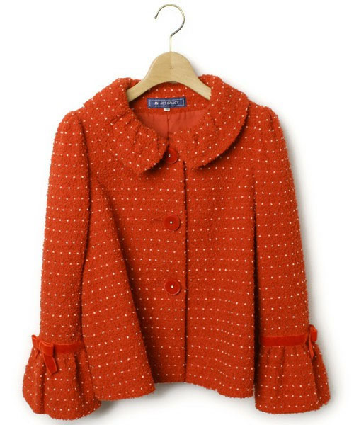 - エムズグレイシー 袖リボン ドット ショート コート 38