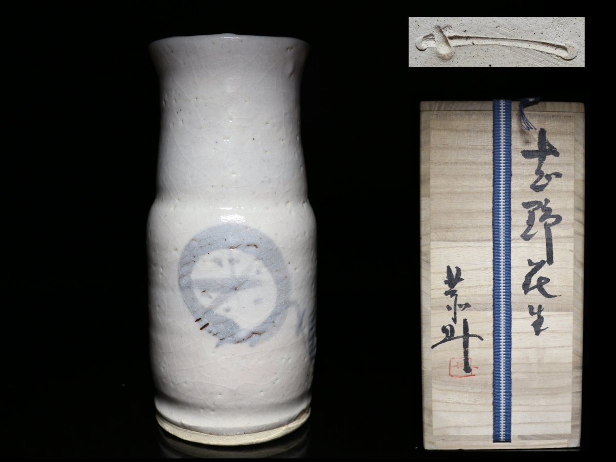- ■本物保証■備前 志野 花生 藤原恭助 共箱 栞 美品・f028