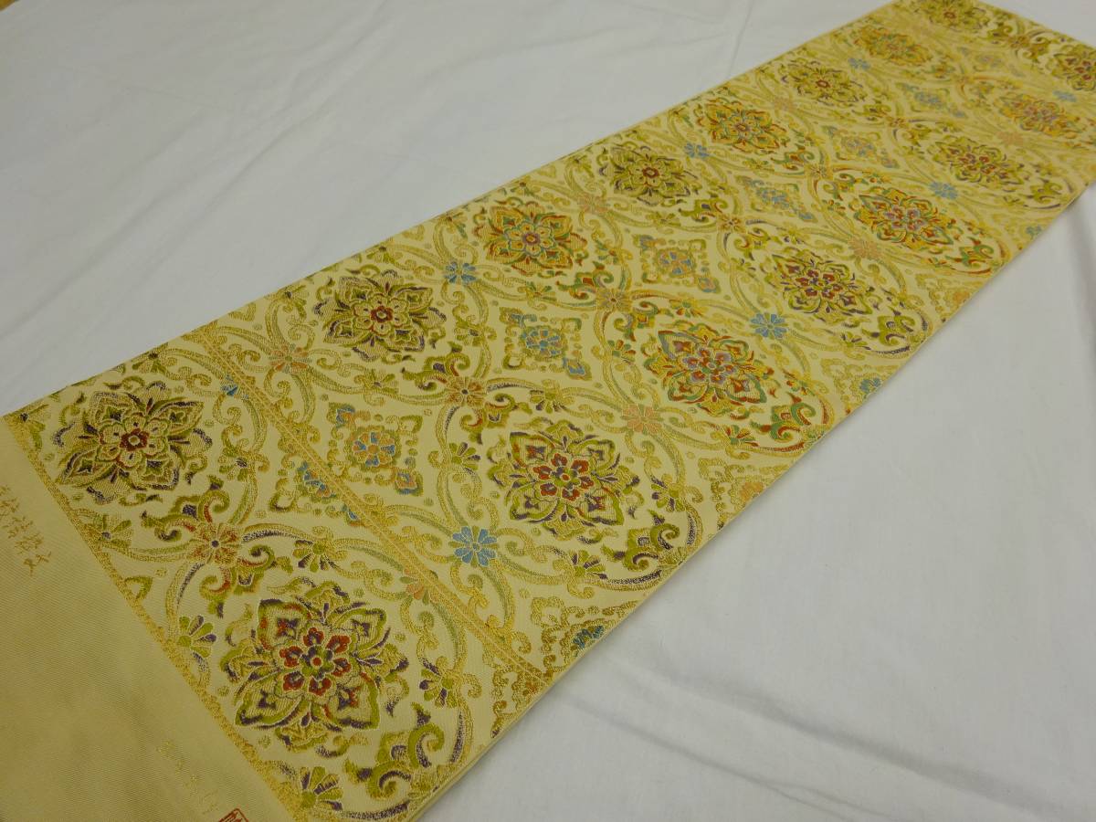 > 新品・未仕立て★京都西陣・織華佐竹製袋帯★ベージュ地に華紋詰粋文柄です
